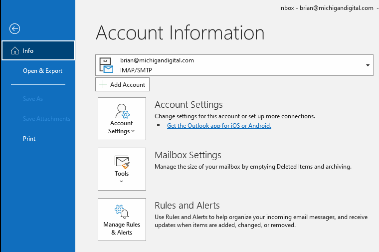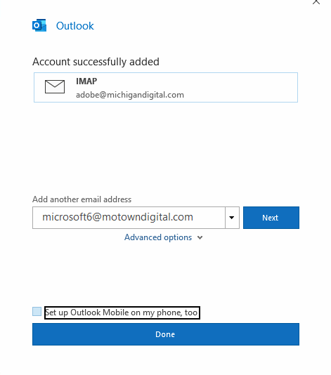 Here's a guide to set up your new email account in Outlook! This uses the email address adobe@michigandigital.com as an example. Please substitute your own address.