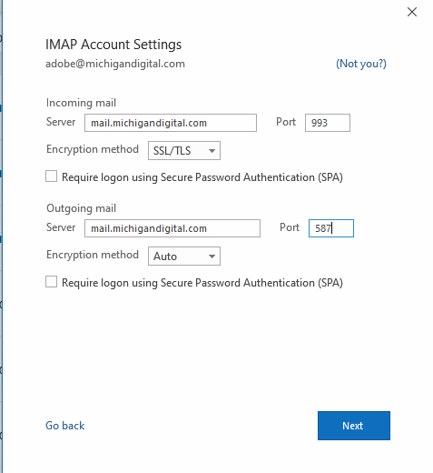 These are the settings you need to add. Please substitute mail.resorttownship.gov everywhere you see mail.michigandigital.com. Everything else remains the same.